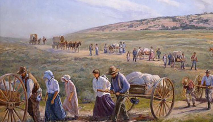 A la semana siguiente, al llegar al pie de la ladera, en una playa adyacente, vimos no menos de 40 réplicas de Carros de Mano. Nos dividieron en grupos de cinco: dos tirando, otros dos empujando y el quinto arriba del carro. Intercambiándonos lugares durante el viaje. Partimos en distintas direcciones, todos teníamos que escalar el monte con un recorrido variado. La duración fue de aproximadamente tres horas. Antes de partir, tuvimos tiempo de revisar y meditar sobre las diez compañías que salieron con el mismo vehículo hacia el oeste, entre 1856 y 1860. Especialmente las de Martin y Willie, que quedaron atrapadas por las intensas nevadas producto de un invierno que se adelantó, y lamentablemente muchos miembros murieron durante la travesía. En nuestro breve recorrido, pasamos por estrechos y empinados senderos, tuvimos que remover ramas y árboles caídos y cruzar riachos y aún pequeños pantanos.