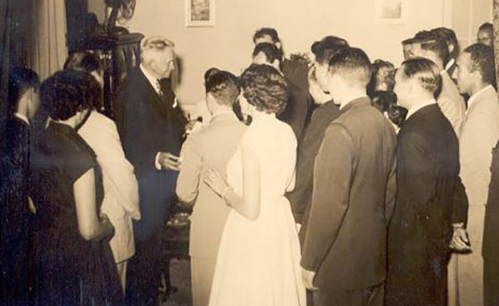 A la recepción en su honor, que se realizó en la vieja Casona de la calle Virrey del Pino, en el Barrio de Belgrano, de la Capital Federal, asistieron miembros y líderes de los distritos cercanos.